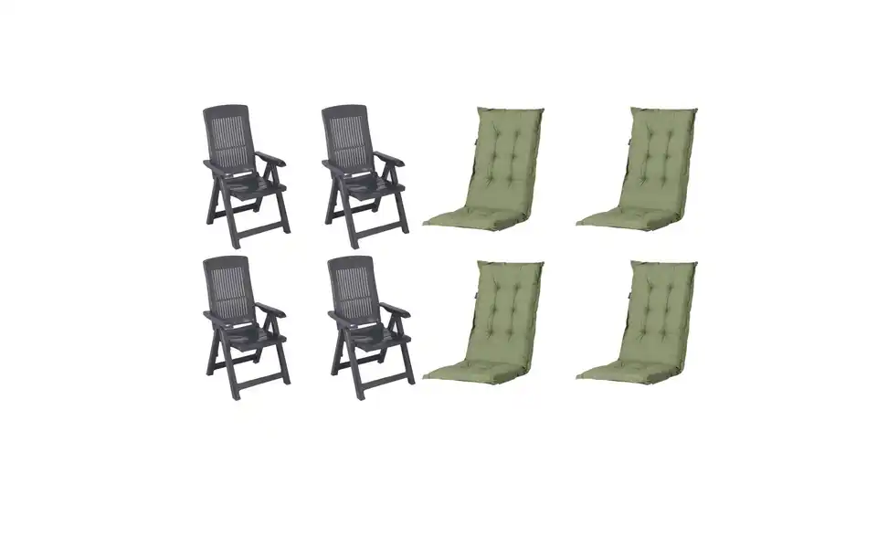 - Lieferumfang / mitgeliefertes Zubehör4 x Klappsessel anthrazit, 4 x Auflage grün